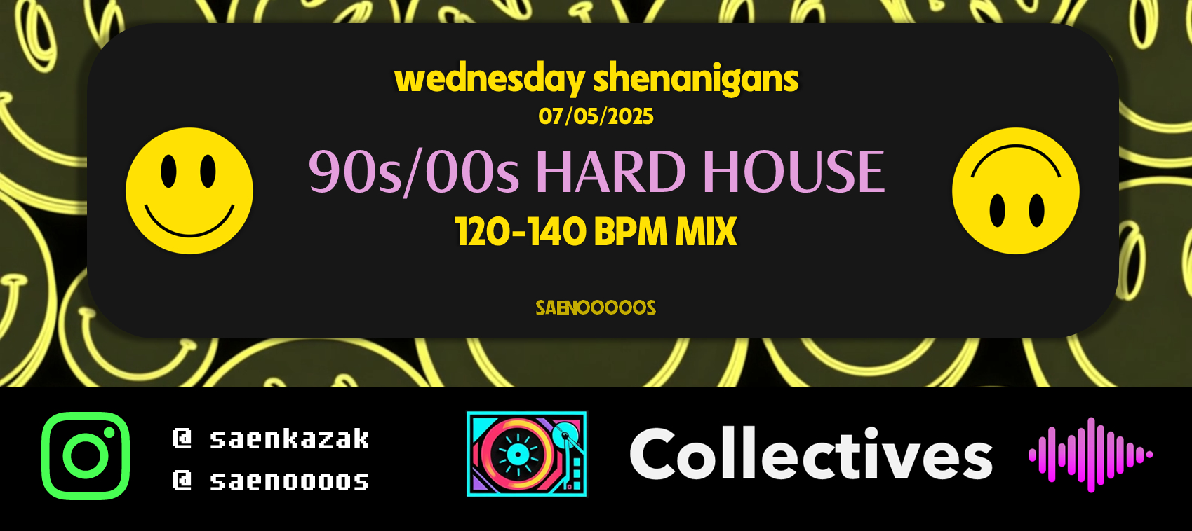 30 Minutes of 90s and 00s Hard House, with tracks mostly pulled from the Hard House Bible mixes available on Spotify.