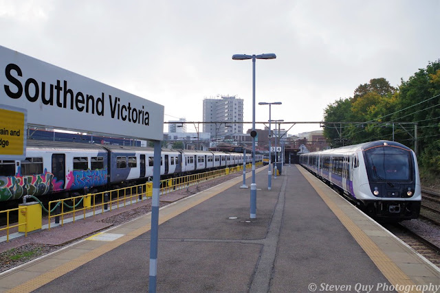 Is that a purple train at Southend Victoria? Image Credit: Steven Quy
