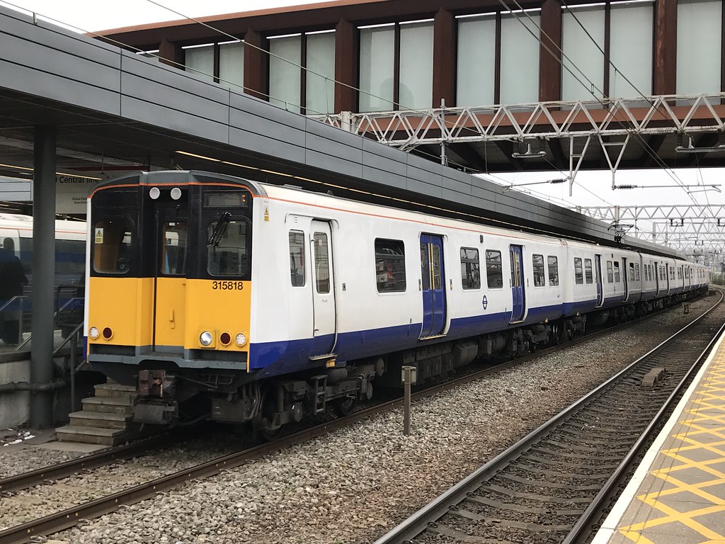 TfL Rail’s soon-to-be-phased-out class 315 trains, with 315818 here at Stratford.